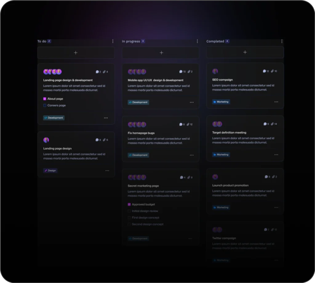 categorizes tasks into stages—To Do, In Progress, and Completed. This